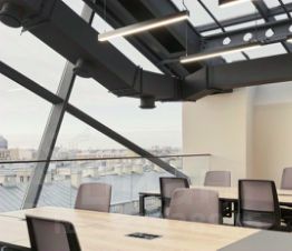 В офисе есть оборудованная кухня, зоны отдыха, ресепшн, переговорные комнаты, гардеробная, санузлы.