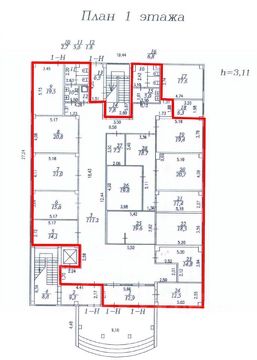 Описание помещения: Площадь расположена на нескольких этажах - 1 этаж - 415,2 м2, 2 этаж - 437,3 м2, 3 этаж - 439,8 м2.