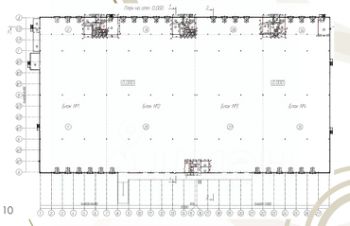 Шаг колонн - 12 на 24. Бетонный пол с антипылевым покрытием. Допустимая нагрузка на пол до 7000 кг на м2.