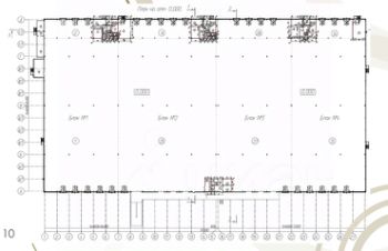 Шаг колонн - 12 на 24. Бетонный пол с антипылевым покрытием. Допустимая нагрузка на пол до 7000 кг на м2.