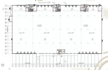 Шаг колонн - 12 на 24. Бетонный пол с антипылевым покрытием. Допустимая нагрузка на пол до 7000 кг на м2.