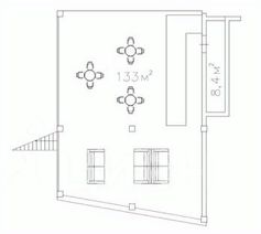 Описание помещения: Пpoстоpный зaл с мeбелью - столы, стулья, мягкие диваны.