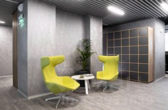 Есть переговорные комнаты, зона отдыха, ресепшн, оборудованная кухня с зоной приема пищи, санузлы.