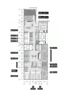 Описание помещения: Офис на 6 человек, полностью мебелирован и укомплектован орг. техникой. На плане офис - G9.