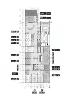 Описание помещения: Офис на 4 человека, полностью мебелирован и укомплектован орг. техникой. На плане офис - J12.