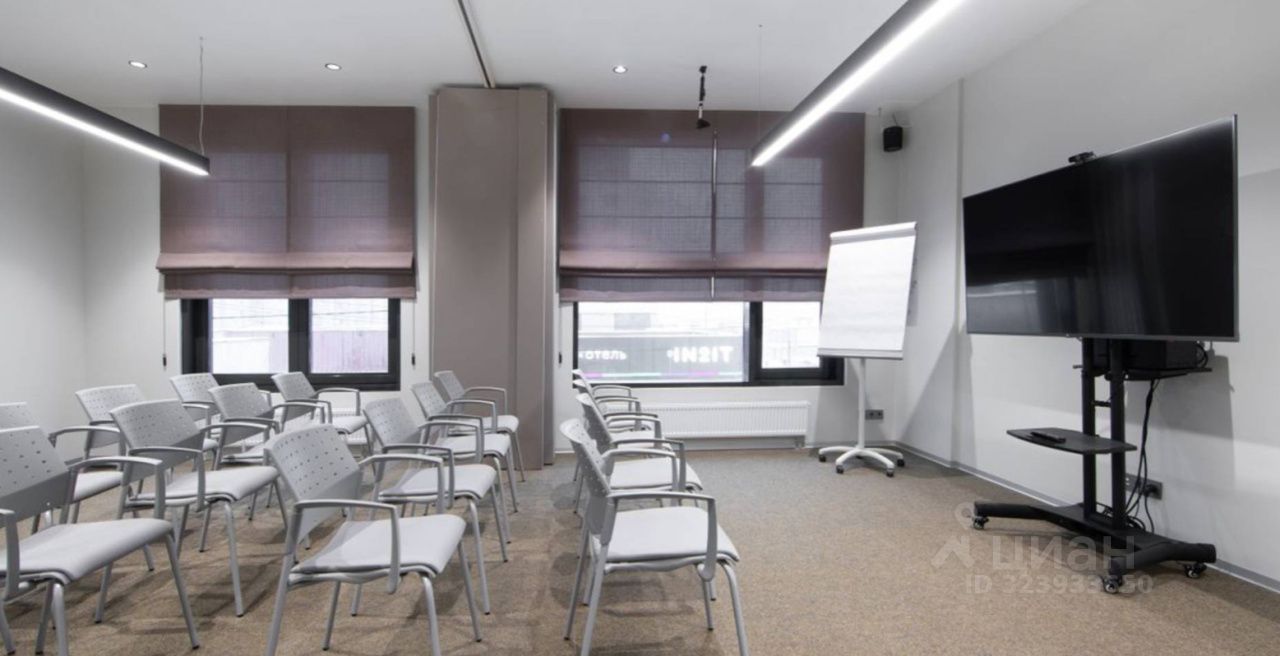 Есть переговорные комнаты, зона отдыха, ресепшн, оборудованная кухня с зоной приема пищи, санузлы.