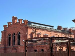 Историческое здание, известное под названием Санкт-Петербургский трубочный завод. Производственный корпус с меднолитейной мастерской - Завод имени Калинина. Построено в стиле - Дореволюционной застройки в 1882 году, архитектор - Генрихсен фон Р. Р.