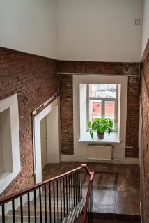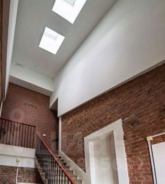 Пространства отличаются высокими потолками и большим количеством окон, обеспечивающих естественное освещение.