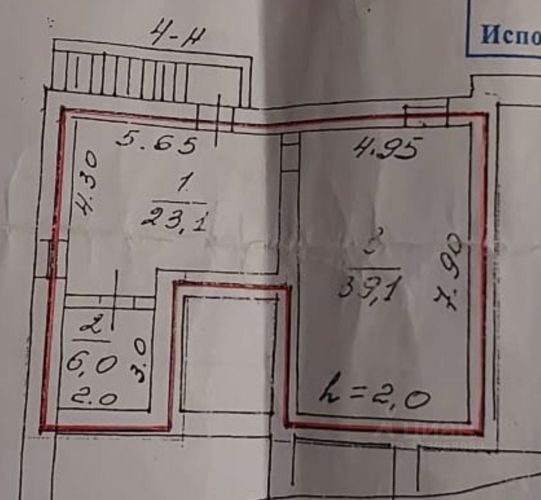 2- изолированных помещений 39,1 кв.м. и 23,1 кв.м + подсобное помещение 6 кв.м.