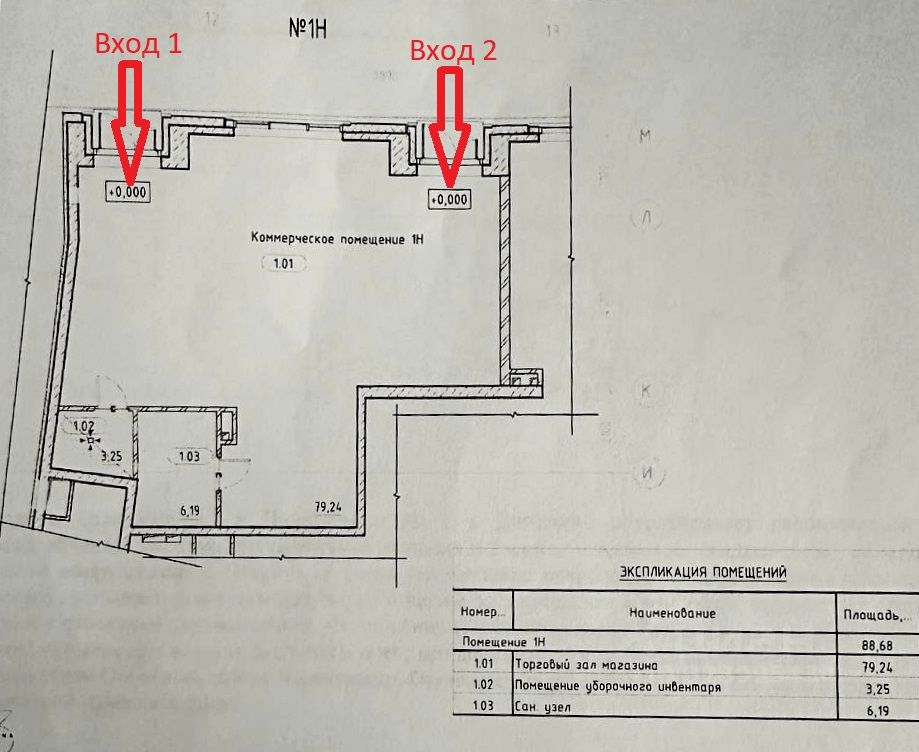 -1-й Этаж (высокий c панорамными окнами). Два отдельных входа с фасада (проспект Бакунина).