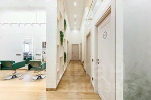 встроенный шкаф при входе, ресепшн, лаборатории в каждом кабинете, зеркала в парикмахерском зале.