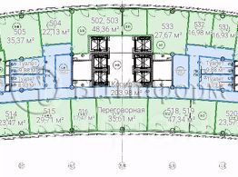 Коридорно-кабинетная планировка состоит из 24 комнат различной площади, блок санузлов.
