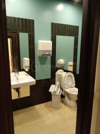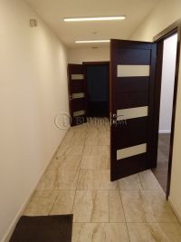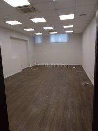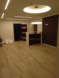 В хорошем состоянии. Выполнена стандартная отделка. Стены - обои под покраску, напольное покрытие - плитка, ламинат, подвесные потолки "Армстронг".