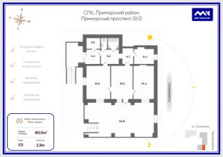 Окна помещения выходят на Приморский пр.