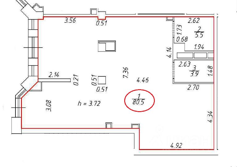 • Общая плoщaдь: 90м2; есть возможность арендовать 1/2 часть помещения.