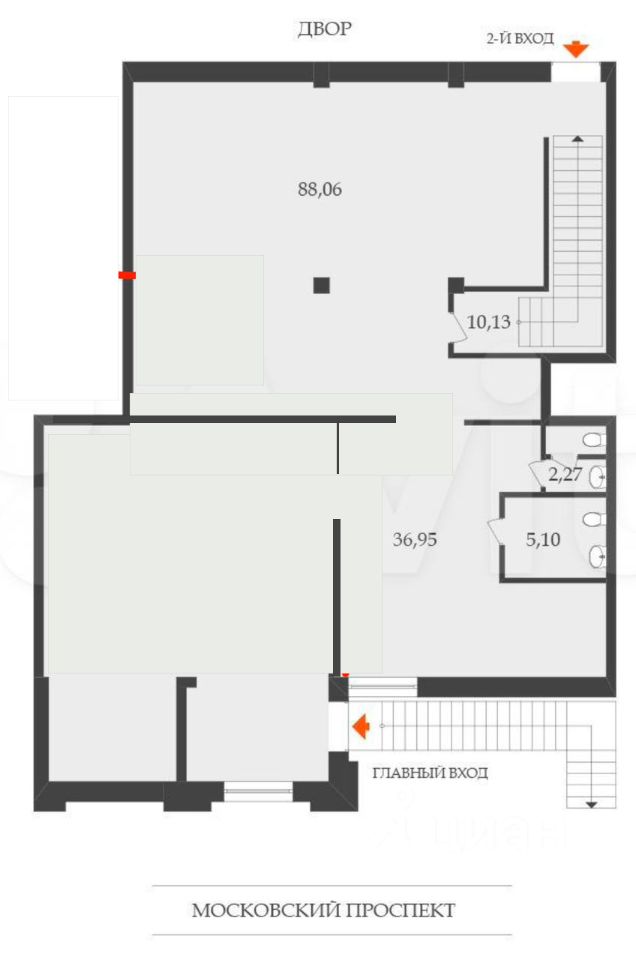 - Плюсы локации: очень большая проходимость, 300 000 м2 площадь ЖК, где средняя стоимость м2 - 350 тыс.руб., а арендного жилья - 80 000 руб/мес. Соседнее помещение арендует лаборатория Инвитро.