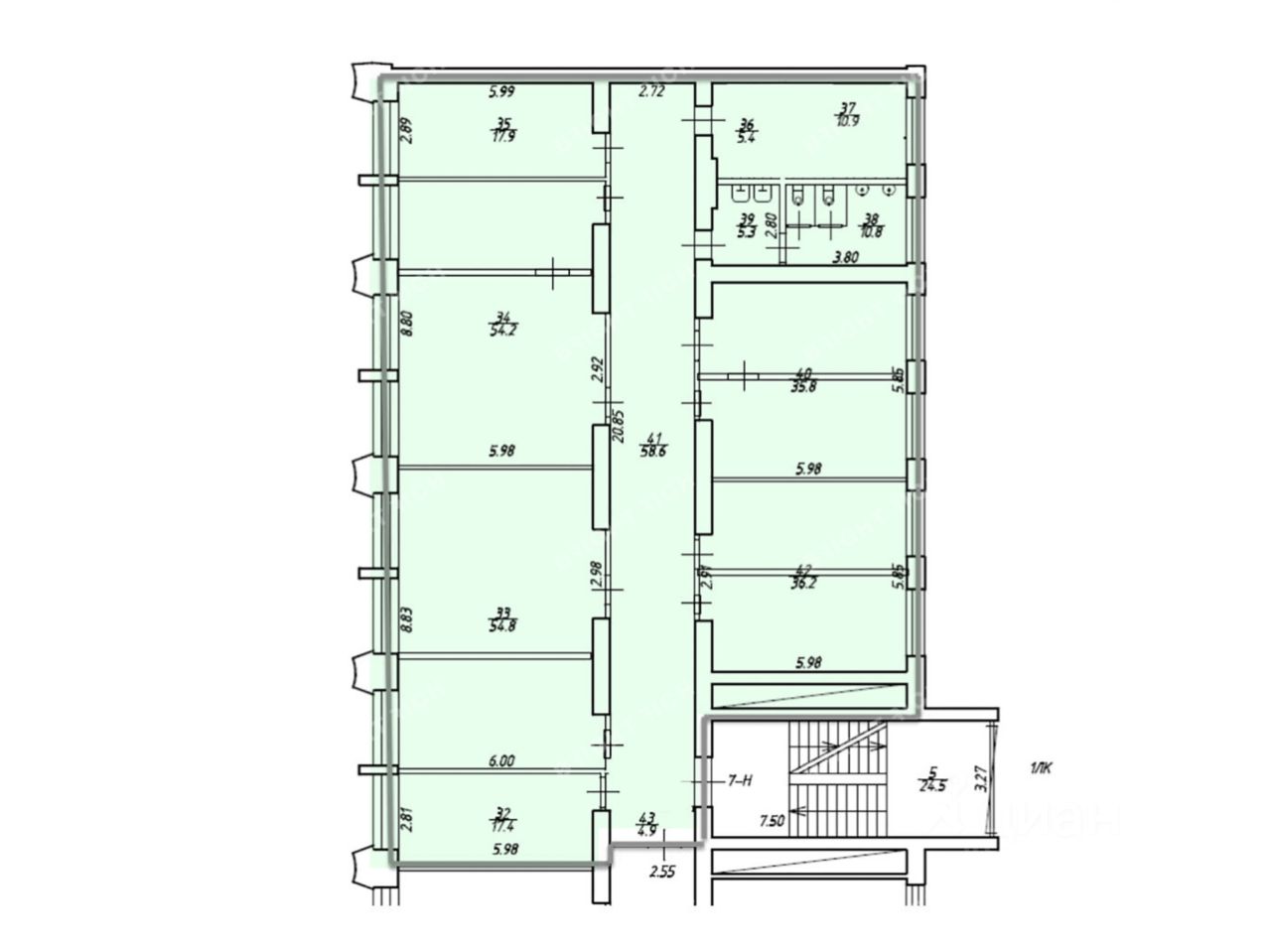 - Размер типового этажа: 950;