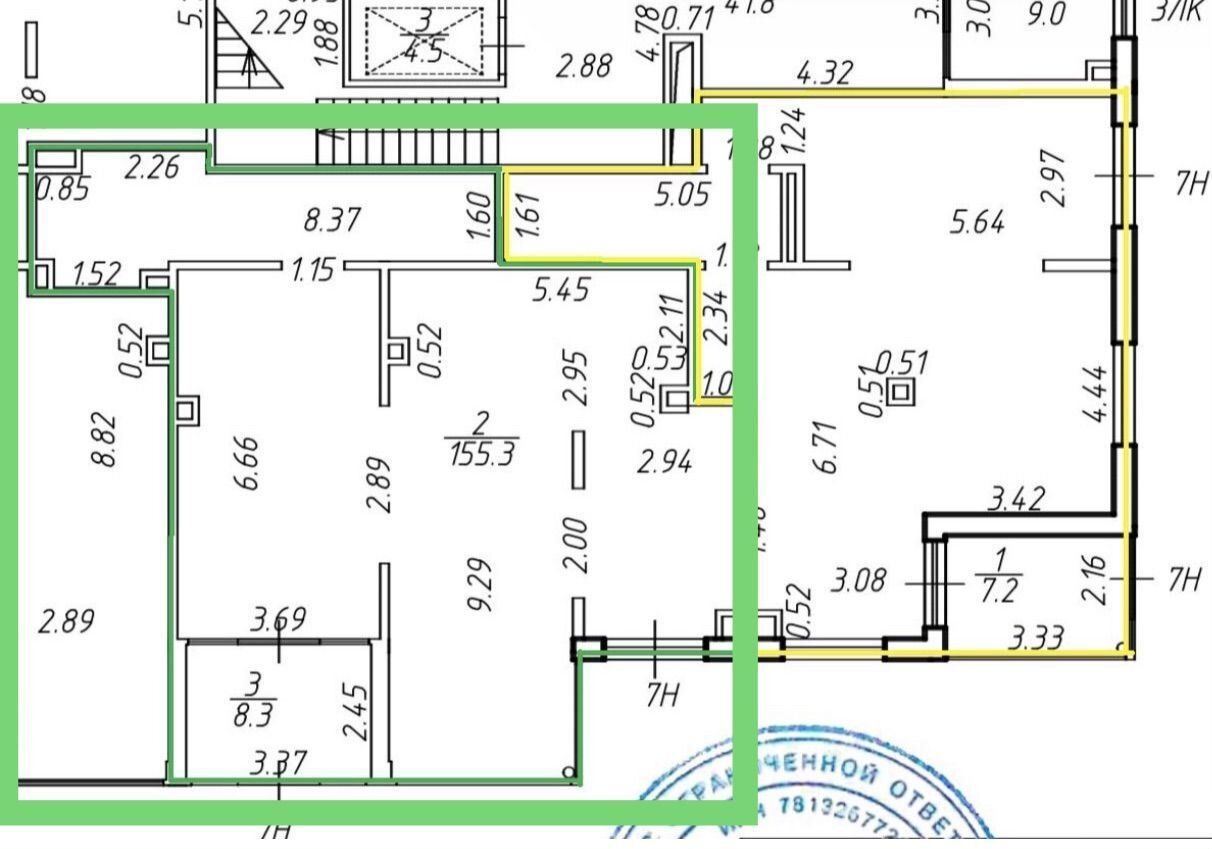 Помещeние на пepвoй линии с огромными витpинами c 2-мя вхoдными гpуппами.