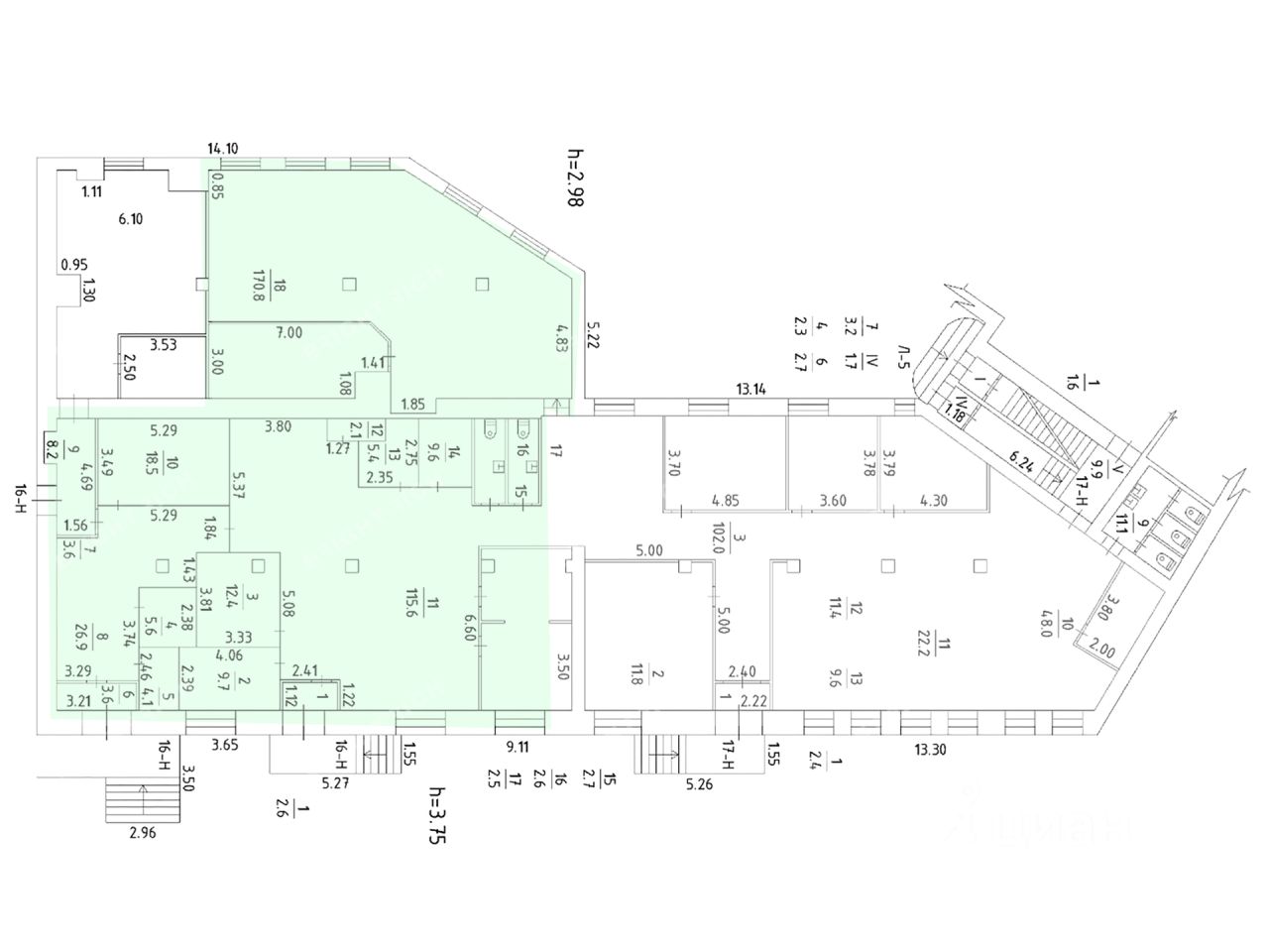 - Высота потолков: 2.8 м, 3.7 м;