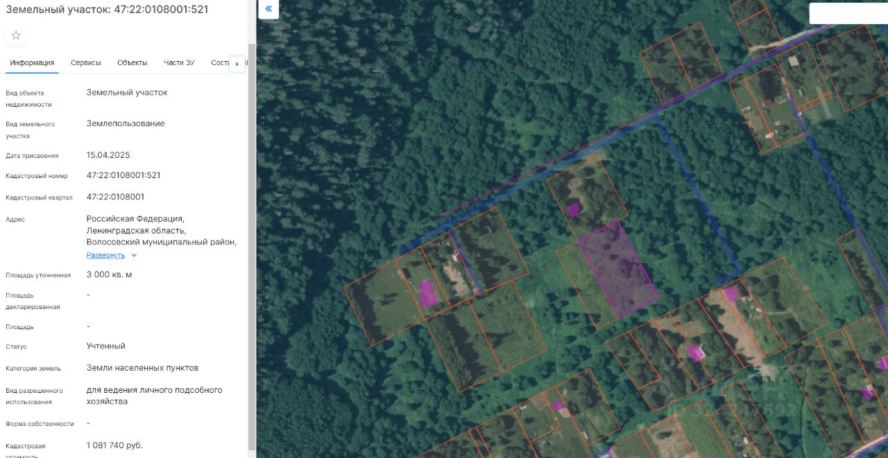 Земельный участок с кадастровым номером 47:22:0108001:521, площадью 3000 кв.м.