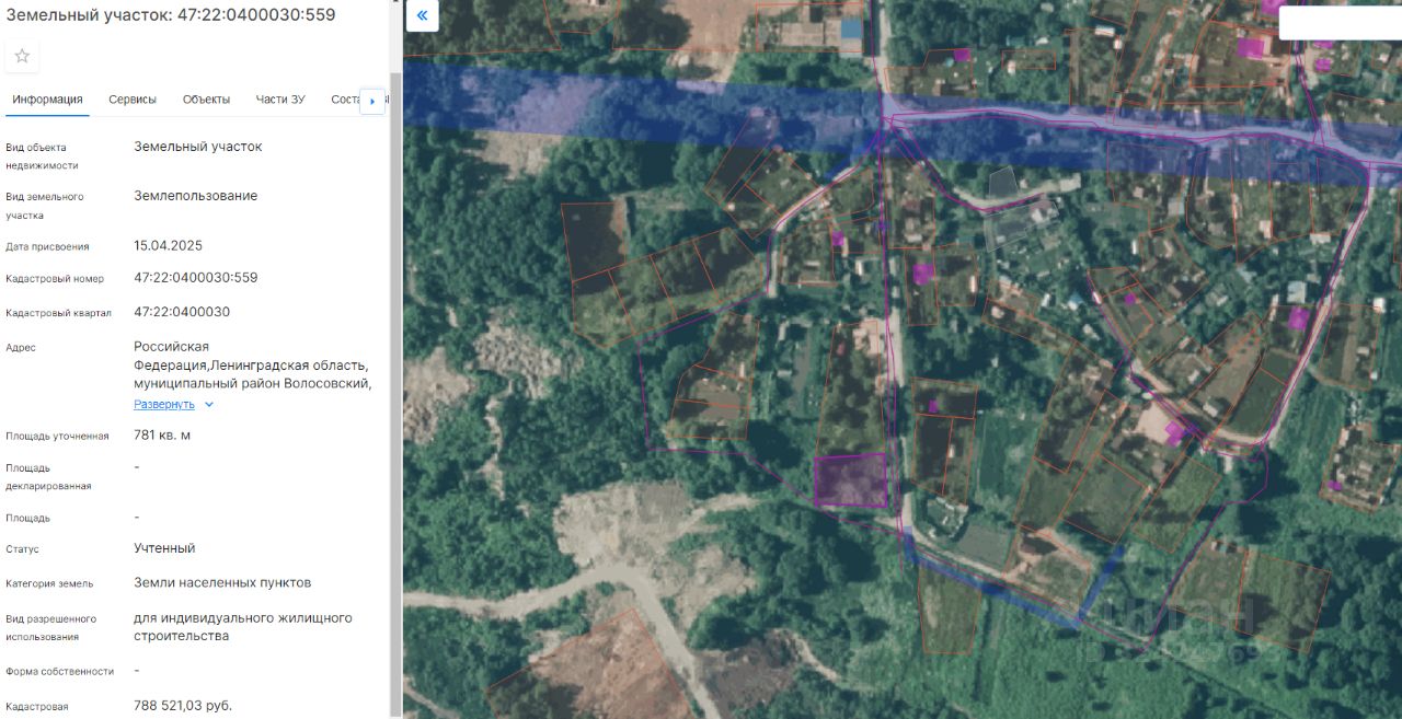 Земельный участок с кадастровым номером 47:22:0400030:559, площадью 781 кв.м.