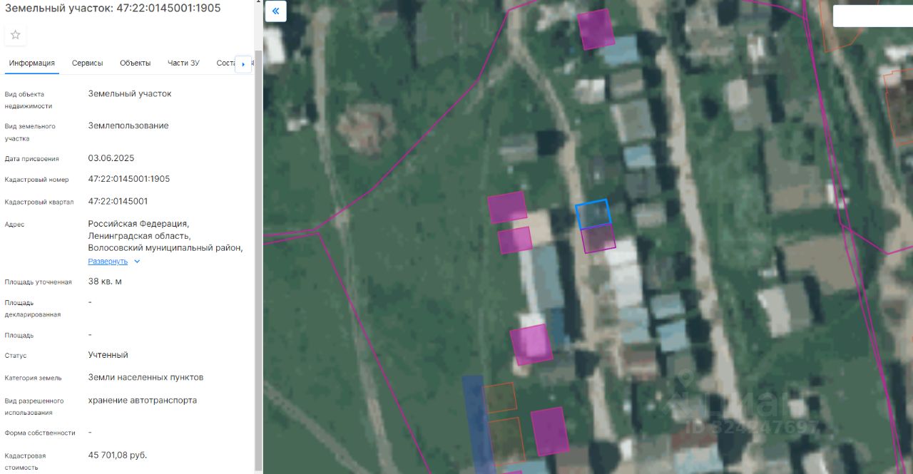 Земельный участок с кадастровым номером 47:22:0145001:1905, площадью 38 кв.м.