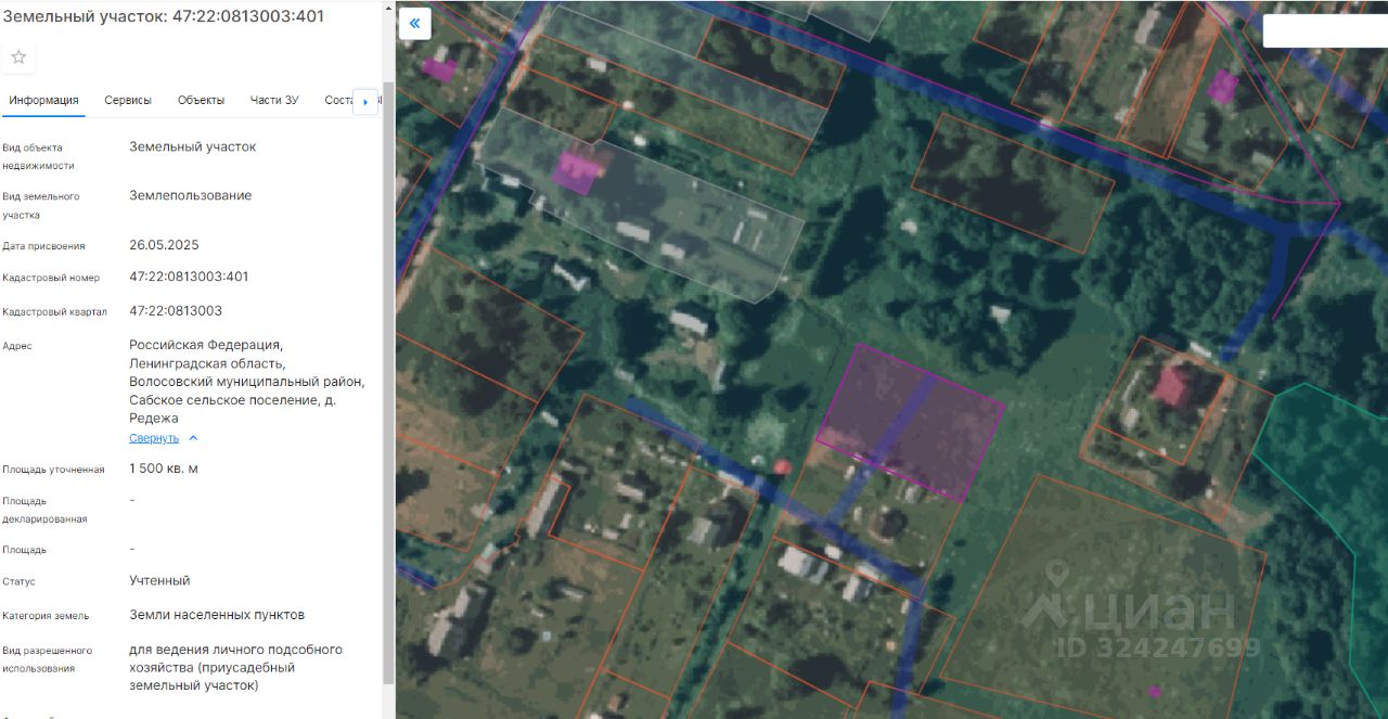 Земельный участок с кадастровым номером 47:22:0813003:401, площадью 1500 кв.м.