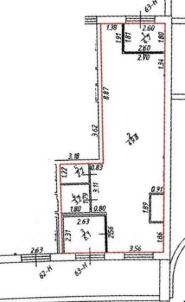 Коммерческое нежилое помещение 66м.кв с 2-мя входами (с улицы и со двора), с 2-мя тамбурами, высотой 4, 30м, витринными окнами, свободного назначения. Оплата коммунальных издержек по счётчикам и счетам. Электричество -17,4 кВт.