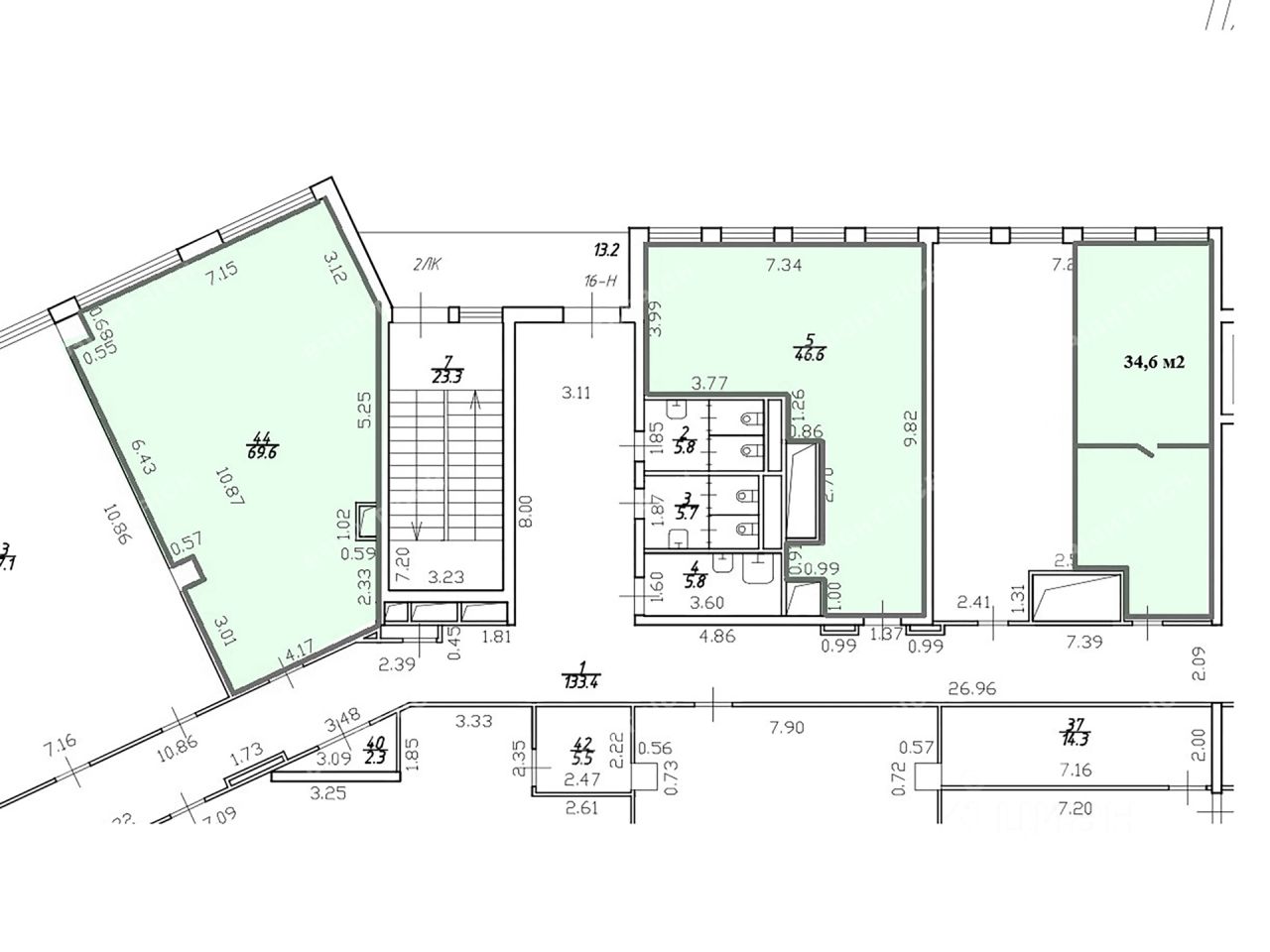 - Размер типового этажа: 1330;