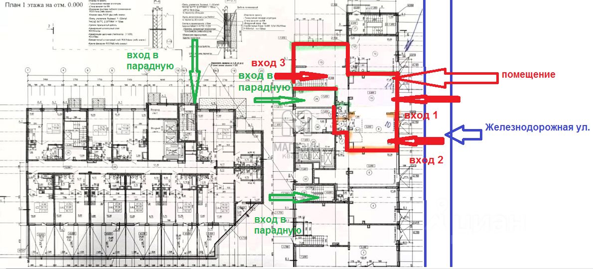 - входы в помещение расположены с фасада здания и с внутренней стороны рядом с входом в парадную. Здесь же можно осуществлять и разгрузку.