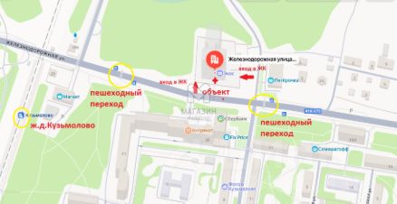 - 1-я линия Железнодорожной улицы с активным автомобильным и пешеходным трафиком;