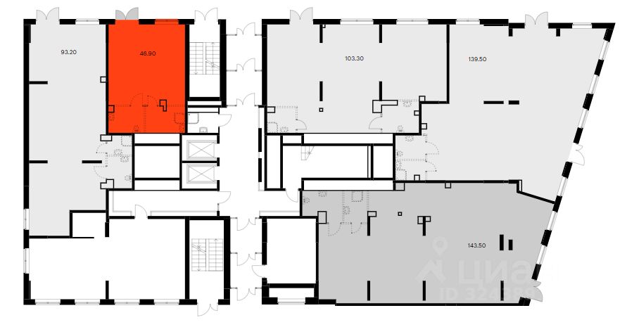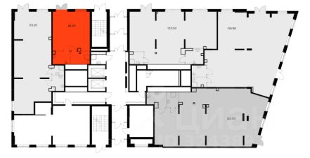 Планировка - openspace (есть 2 колонны), 2 витринных окна, этаж 1 = вход на уровне земли (без ступенек), пожарный угол (огнетушители, гидрант), горячая и холодная вода, канализация