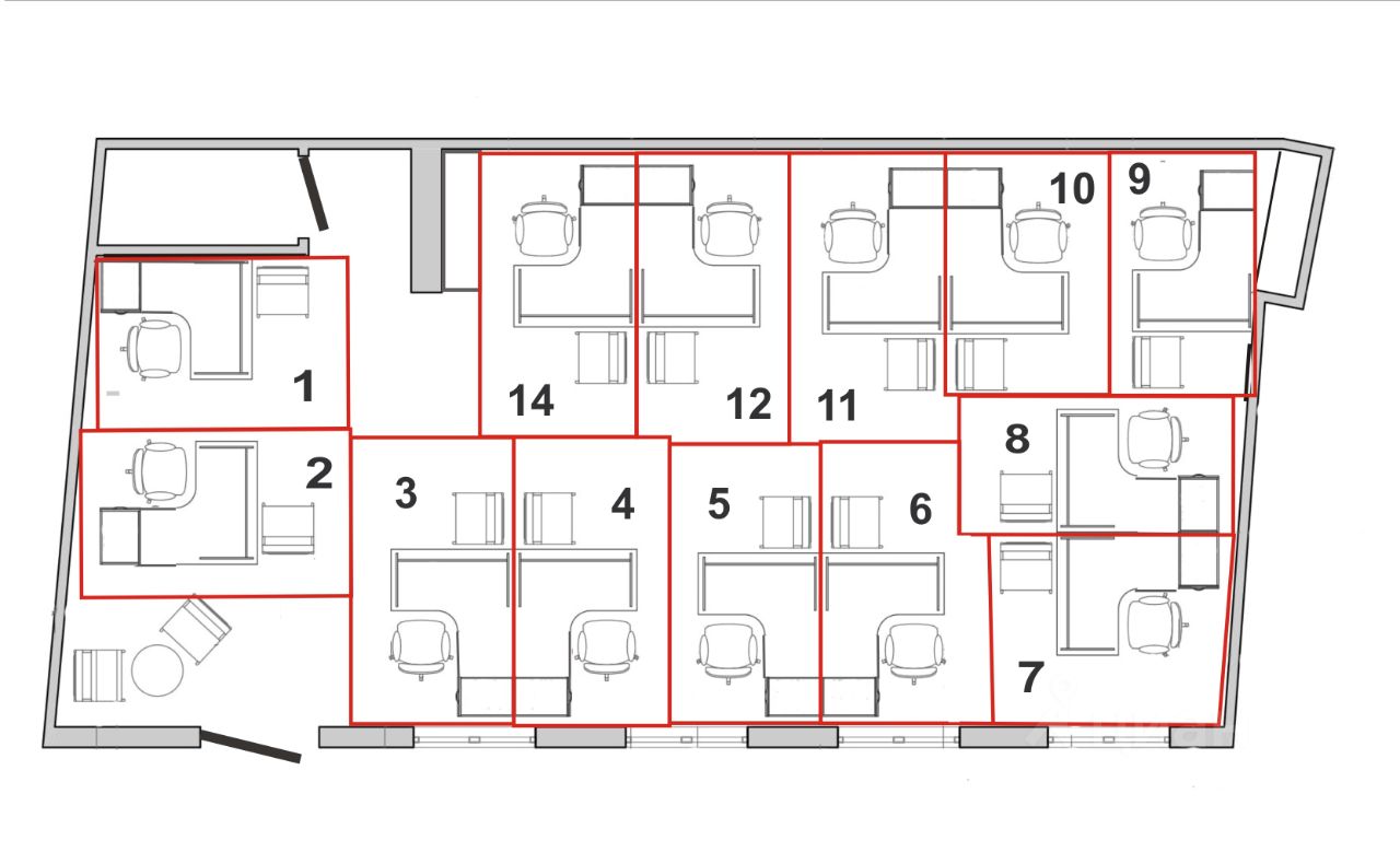 Первый двор. Высокий первый этаж. Отдельный вход с крыльцом. Офисная мебель, оборудовано 13 рабочих мест.