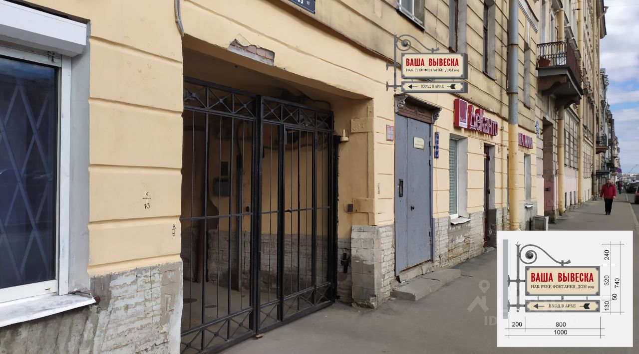 ВЫВЕСКА возле арки возможна, уже согласована с комитетом, изготовим (сам занимаюсь), пример разместил на фото.
