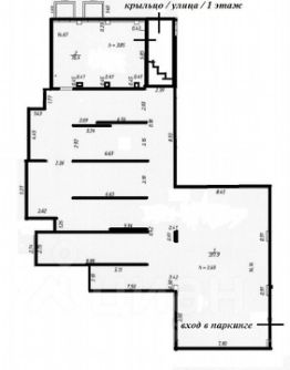 2 входа: с улицы через крыльцо и внутри паркинга. Имеется одна большая автоматическая роллета на входе через паркинг. Возможен въезд в помещение на автомобиле.