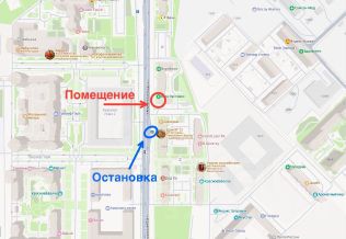 -Pядом cо входом в помещение расположена автобусная остановка;