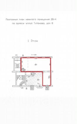 Торговое помещение, вход напротив остановки. Это часть от большого помещения 140кв.м. Электричество 20кВт. План в фото. Разгрузка и вход в одни двери. Трафик хороший.
