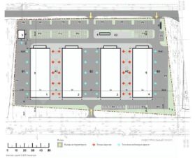 Подъемносекционные ворота, энергоэффективное остекление, пожарная система.