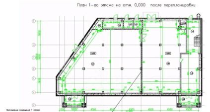 1 этаж - 516.74 м2, высота потолков - 4.5 м.