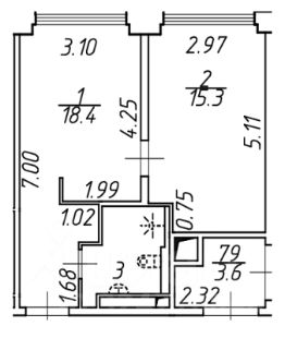 Площадь от 36,7 до 44 метров - 2 смежные комнаты