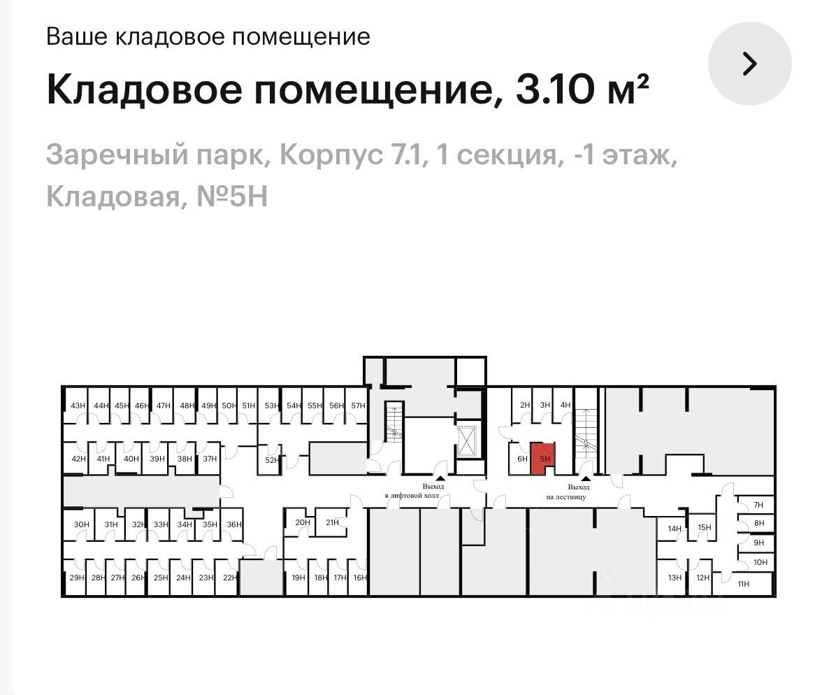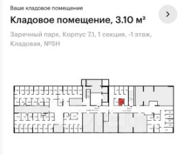 Кладовая на -1 этаже, очень удобно расположенная рядом с лифтом и лестницей.
