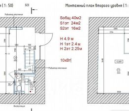 -Высота потолка 4.9 м. Первый эт 2.4м, 2 эт 2.25 м