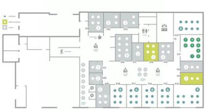 Отдельные рабочие кабинеты, санузлы с душевой, переговорные, конференц зал, лекторий.