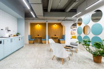 Есть оборудованная кухня, санузлы, переговорные комнаты, зона отдыха и ресепшн.