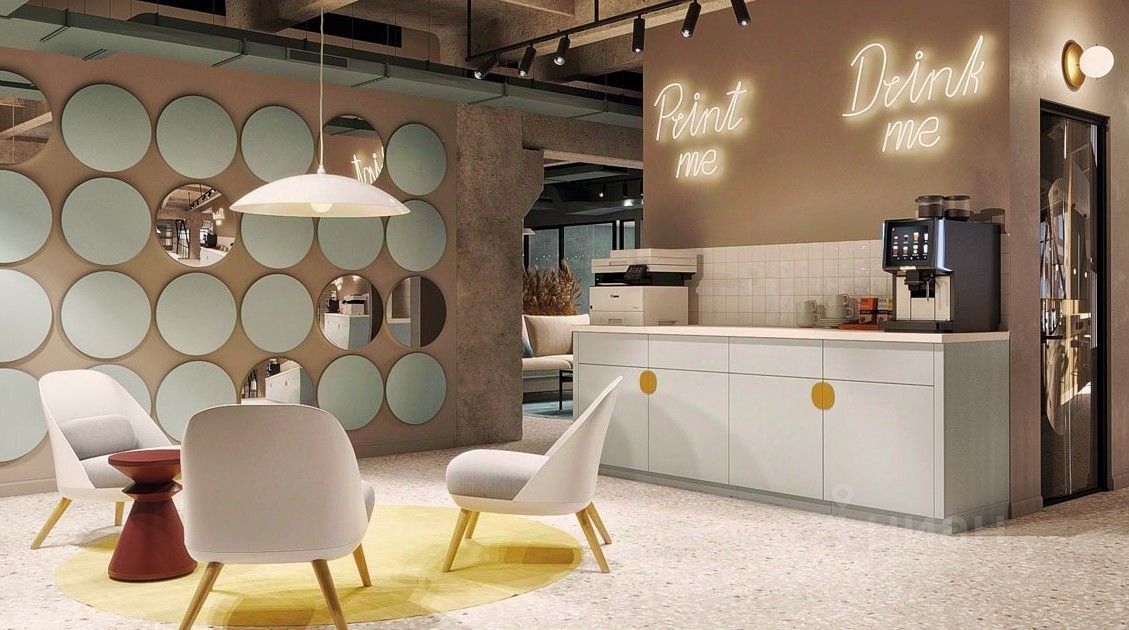 Есть оборудованная кухня, санузлы, переговорные комнаты, зона отдыха и ресепшн.
