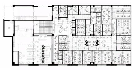 Отдельные рабочие кабинеты рассчитаны на 176 человек, санузлы с душевой, переговорные, конференц зал, лекторий.