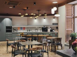 Описание помещения: Презентабельный офис с мебелью и всем необходимым оборудованием для работы 23 человек. Современные смарт-столы, биодинамическое освещение, кондиционирование и центральная вентиляция, переговорные комнаты. Есть оборудованная кухня, санузлы, ресепшн, доступ к зонам отдыха.