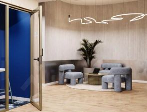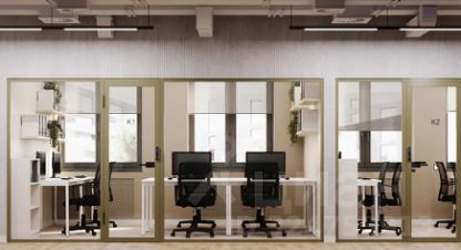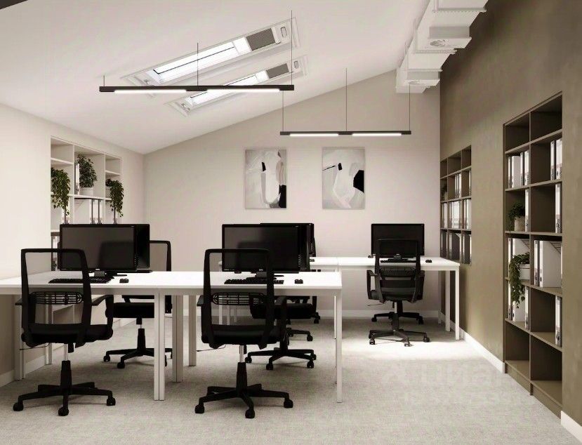 Пространство уже оборудовано всей необходимой мебелью - функциональные рабочие столы, офисные кресла, места хранения для документов.