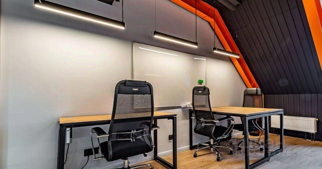 Описание помещения: Презентабельный офис, рассчитанный на 12 человек. Оснащен современной мебелью для комфортной работы - умными столами, удобными креслами, индивидуальными смарт-ключами.