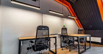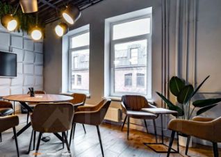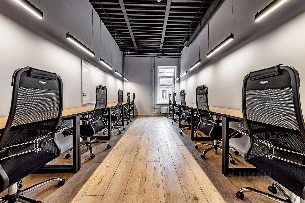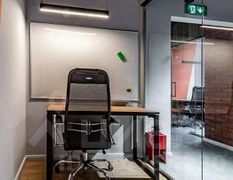 Описание помещения: Презентабельный офис, рассчитанный на 21 человек. Оснащен современной мебелью для комфортной работы - умными столами, удобными креслами, индивидуальными смарт-ключами.